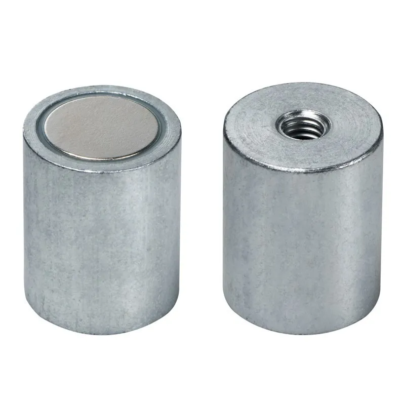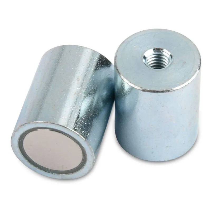 Неодимови магнити тип тенджера, за разлика от грубите неодимови магнити като блокове, дискове или пръстени, са магнитни системи, тоест готови магнитни продукти. Тези магнити са създадени да максимизират магнитната сила при контакт, подобно на магнитна вендуза. Металният корпус, в който е вграден магнитният сърцевина, служи както за защита, така и за заграждане на магнитното поле. Поради това магнитите тип тенджера осигуряват по-голяма сила при контакт, но привличат малко или изобщо не привличат от разстояние. Ако ви трябва силен магнит за приложения, изискващи привличане от разстояние, като металдетектори или магнитни сепаратори, НЕ избирайте магнит тип тенджера, тъй като няма да са полезни. За такива задачи предпочетете неодимови блокове или дискове.