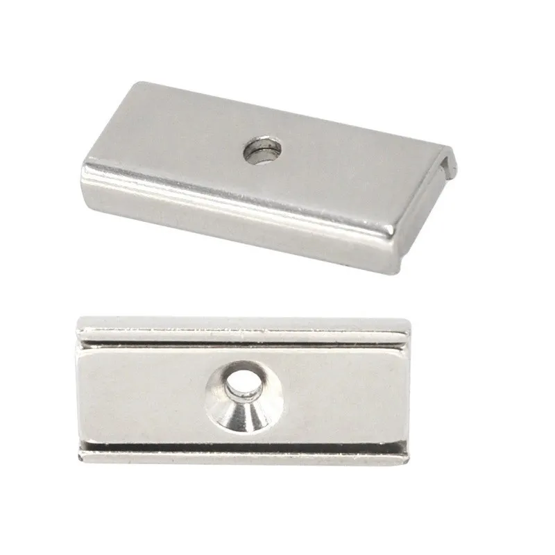 Неодимов магнит блок 30 x 13,5 x 5 мм, в корпус, с дупка D 3,3 и фаска D 6,5
