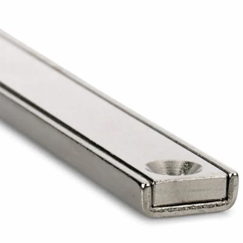 Този неодимов блоков магнит с размери 100 x 13,5 x 5 мм, тип тенджера с два отвора от 3,3 мм и фаска 6,5 мм, предлага практично и ефективно решение за различни нужди от закрепване и монтаж, съчетавайки висока магнитна производителност с адаптивен дизайн.