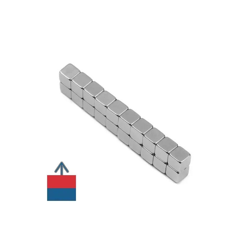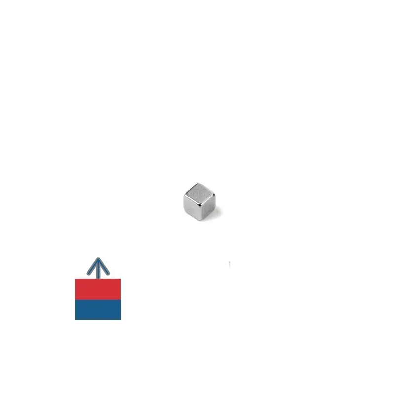 Силен неодимов магнит, кубична форма, никелирано покритие, магнитизация N52, приблизителна сила 420 г