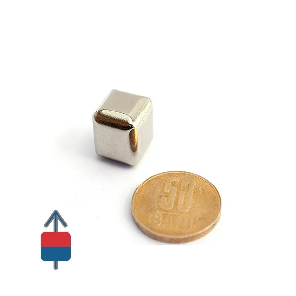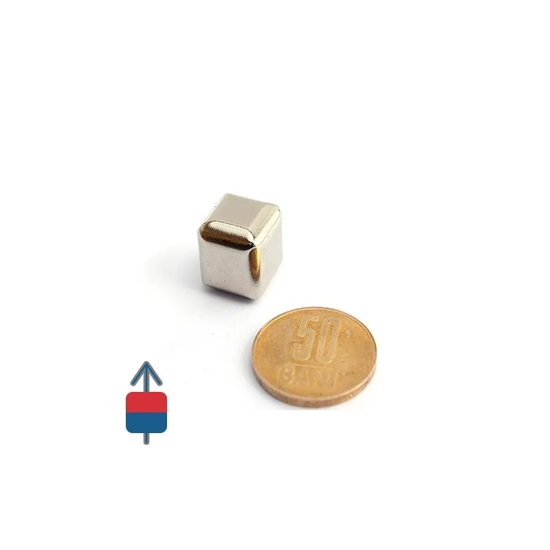 Мощен неодимов магнит, кубична форма, покрит със злато, N52, приблизителна сила 8,1 кг. Кубът е подобен на този с никелово покритие, но златното покритие му придава страхотен вид. Перфектният магнит, ако искате да закрепите бележки върху магнитната дъска по елегантен начин.