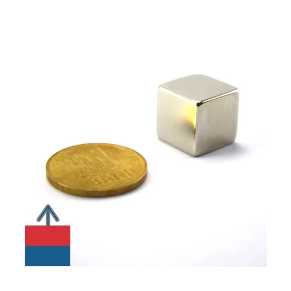 Мощен неодимов магнит, кубична форма, покрит с никел, N52, приблизителна сила 55 кг. Тези неодимови магнити с размер на страна 30 мм са най-мощните кубчета в нашата оферта.