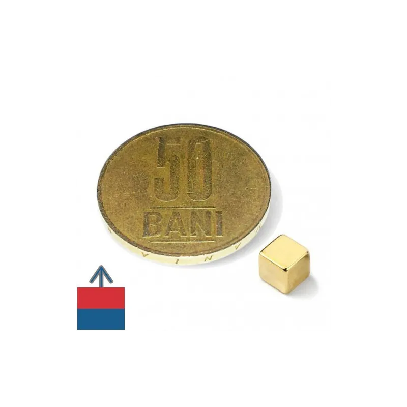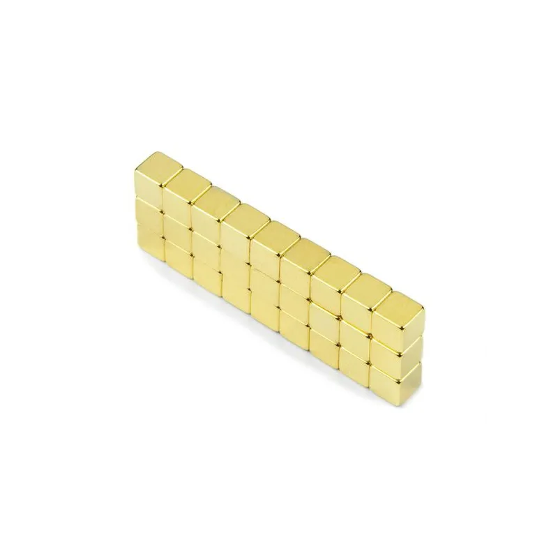 Силен неодимов магнит, кубична форма, златно покритие, N42, приблизителна сила 1,1 кг