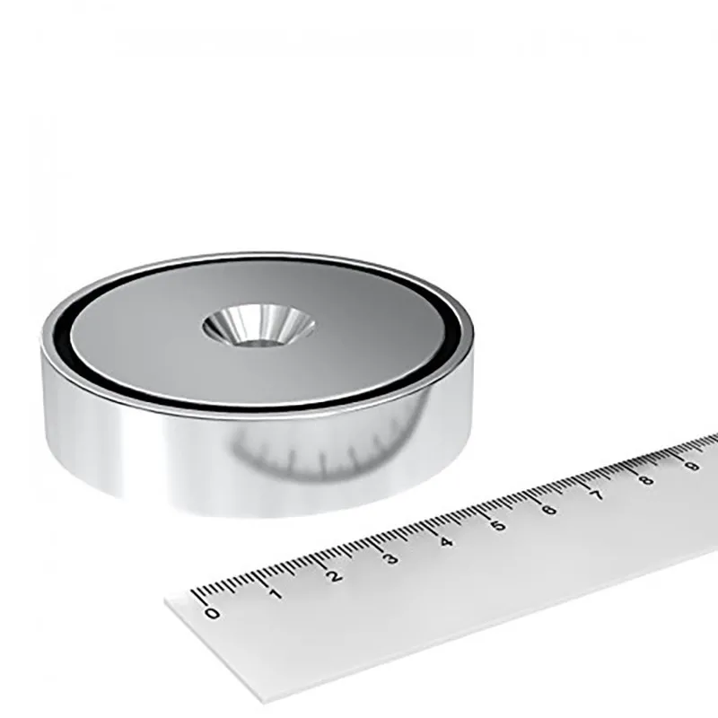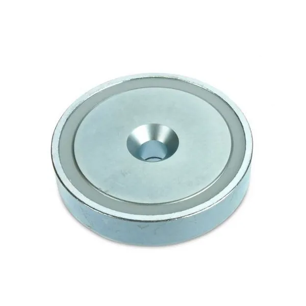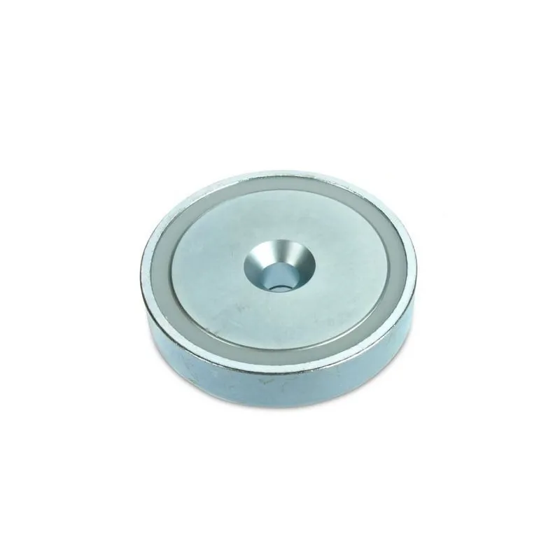 За разлика от грубите неодимови магнити като блокове, дискове или пръстени, магнитите тип „тенджера“ са завършени магнитни системи. Те са проектирани да максимизират магнитната сила при контакт, подобно на магнитна вендуза. Металният корпус, в който е вграден магнитното ядро, служи както за защита, така и за магнитно късо съединение на полето. Поради това магнитите тип „тенджера“ осигуряват силна сила при контакт, но привличат малко или съвсем не на разстояние. Ако търсите мощен магнит за приложения, изискващи привличане на разстояние, като металдетектори или сепаратори, не избирайте магнит тип „тенджера“, тъй като тяхната ефективност е ограничена. За тези задачи предпочитайте неодимови блокове или дискове.