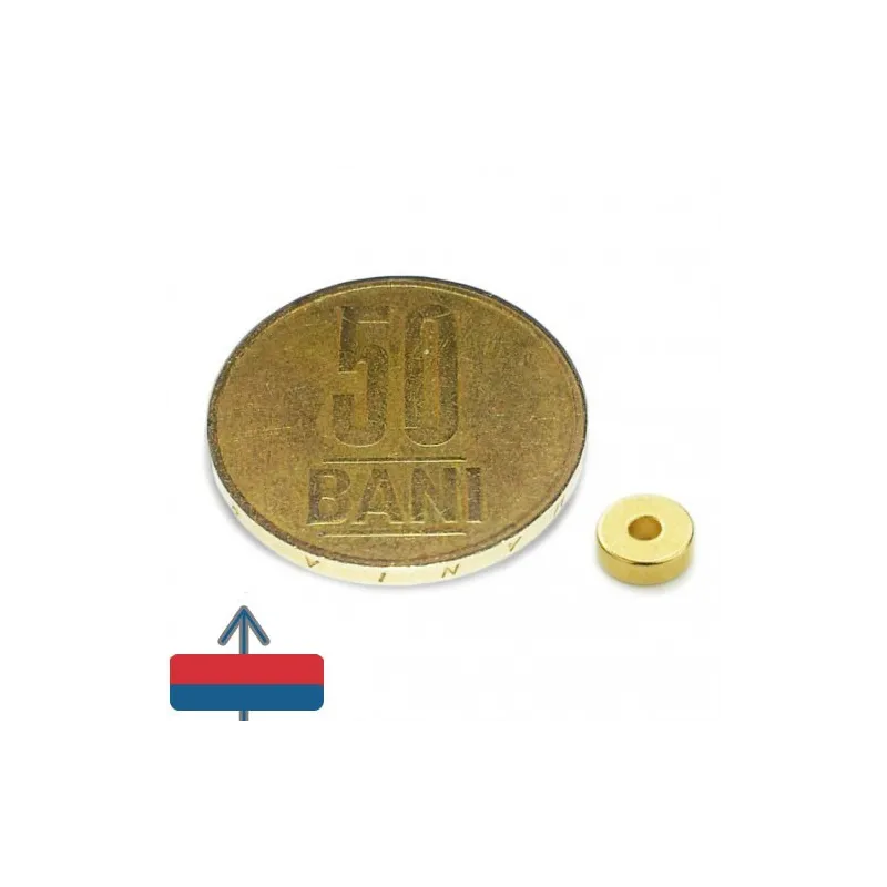 Силен неодимов магнит, пръстеновидна форма, златно покритие, N45, приблизителна сила 640 г