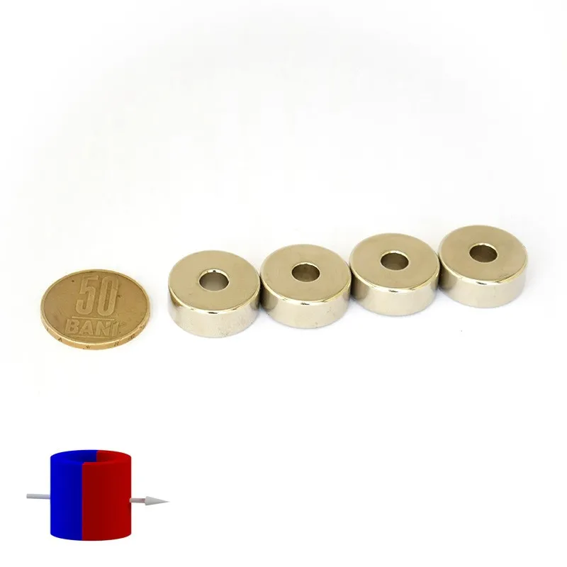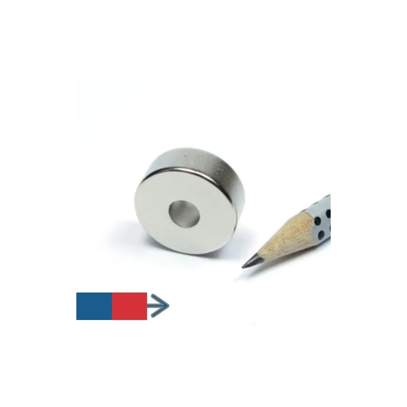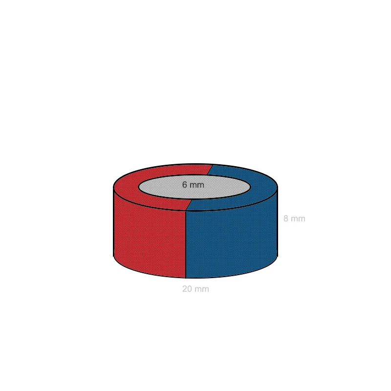 Тези магнити са магнитизирани диаметрално, което означава, че се привличат отстрани. Полюсите са разположени върху кръглата повърхност, като всеки заема половина от диаметъра. Размерите и необичайната магнитизация правят този магнит специален, подходящ за по-необичайни приложения като научни експерименти, демонстрации на магнитни полета, изработка на електрически мотори и други. Ако искате пръстеновиден магнит за закрепване или окачване на метален предмет, препоръчваме да изберете магнит с осева магнитизация.