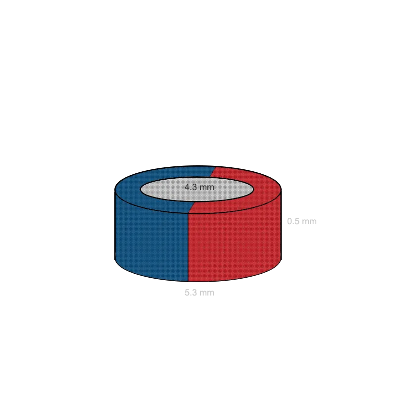 Неодимов магнит пръстен 5,3 x 4,3 x 0,5 мм диаметрално