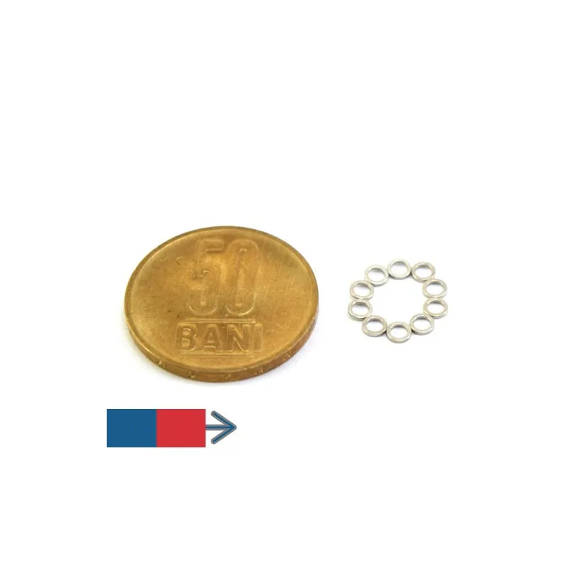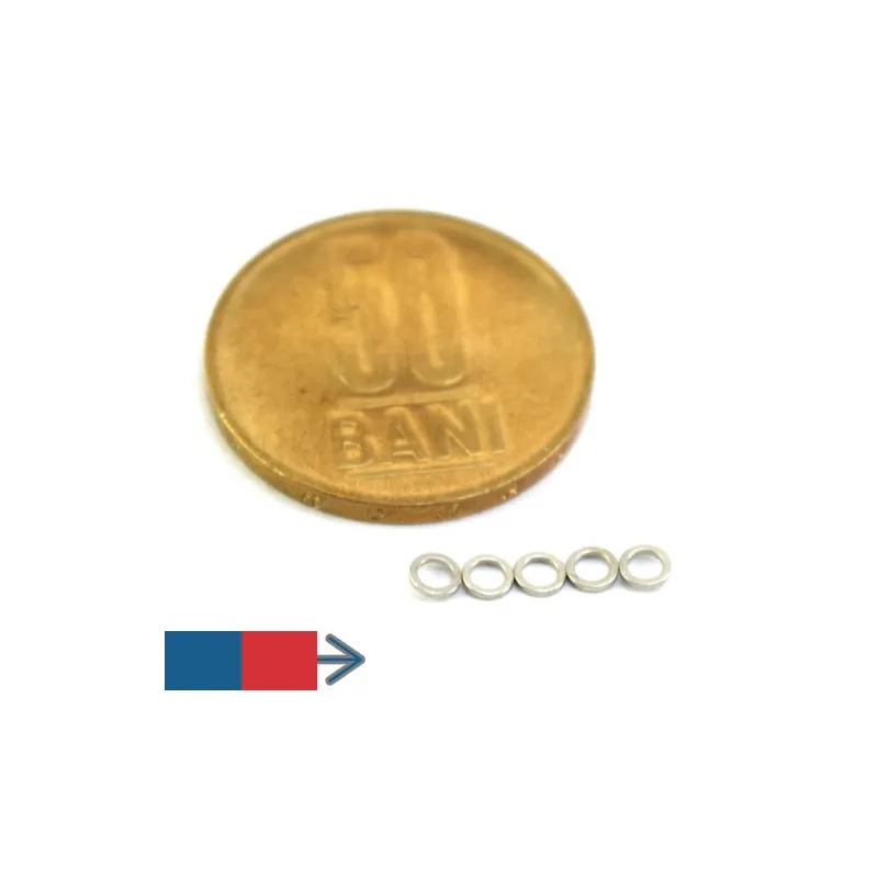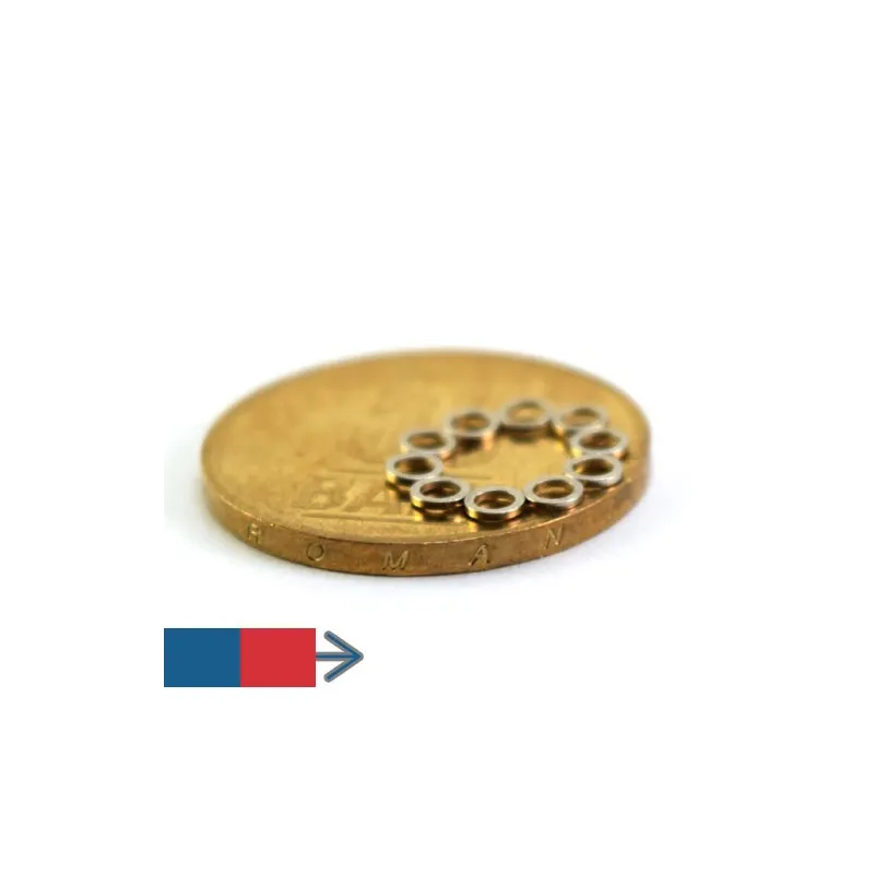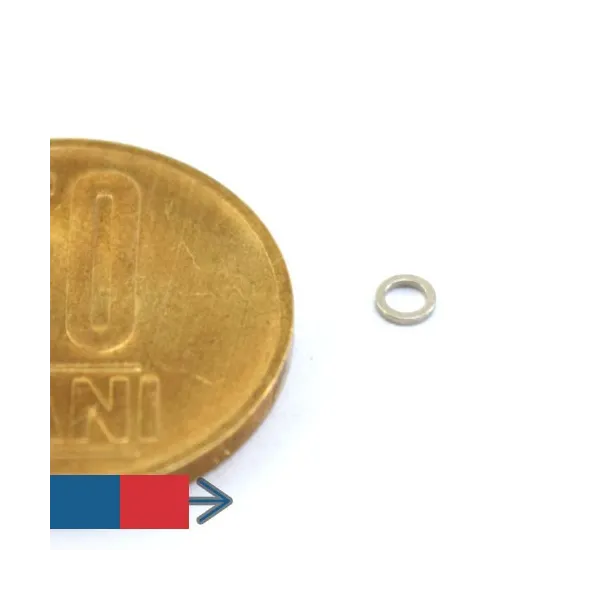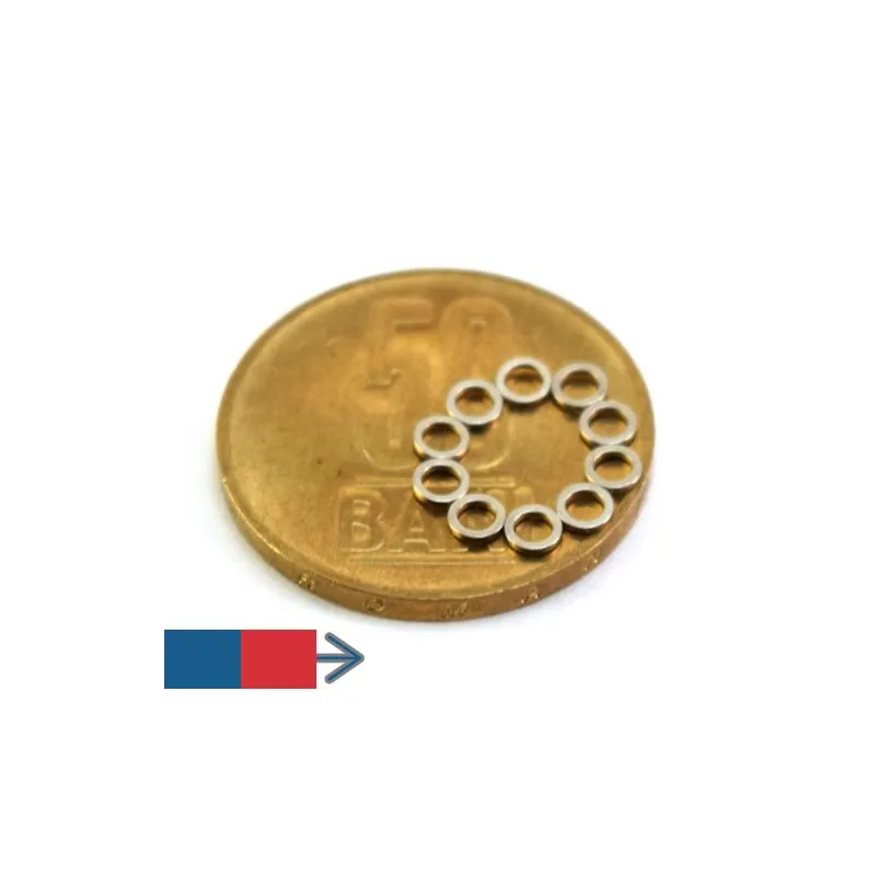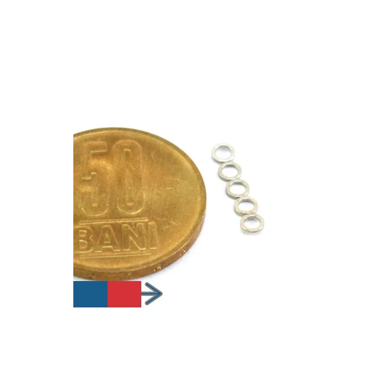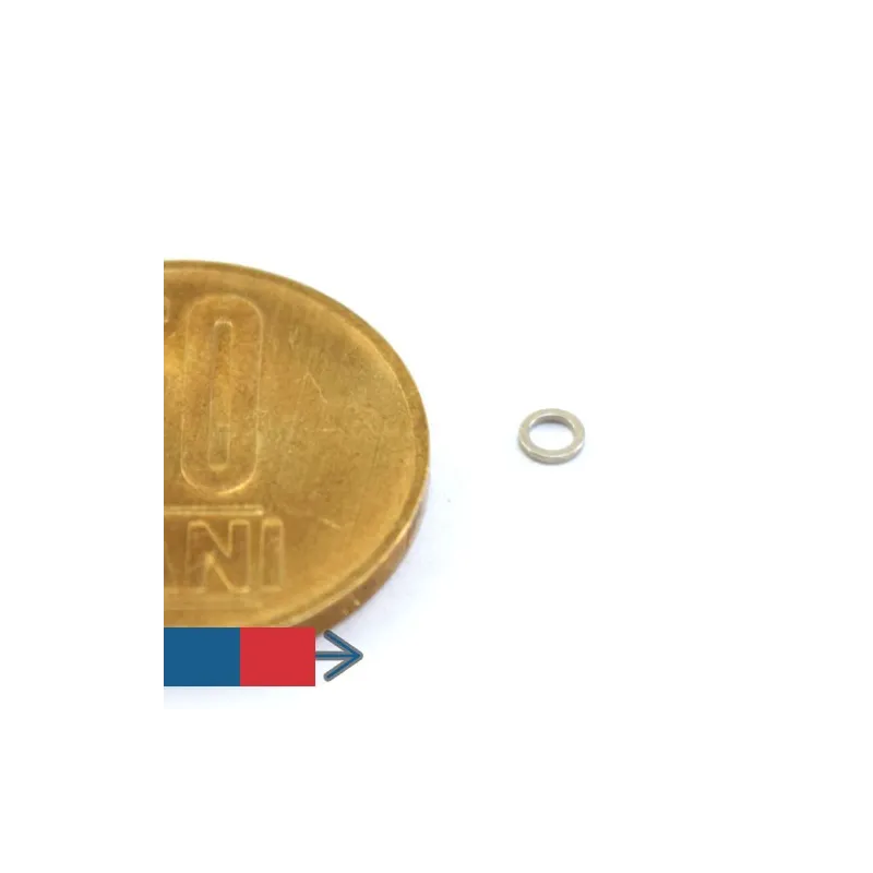 Мощни специални неодимови магнити с пръстеновидна форма. С дебелина само 0,5 мм и диаметрална магнитизация, това определено е екзотичен магнит. Малко търговци в Европа предлагат такива спецификации. Подходящ е за специалисти, за много специфични приложения или за научни експерименти и демонстрации.
