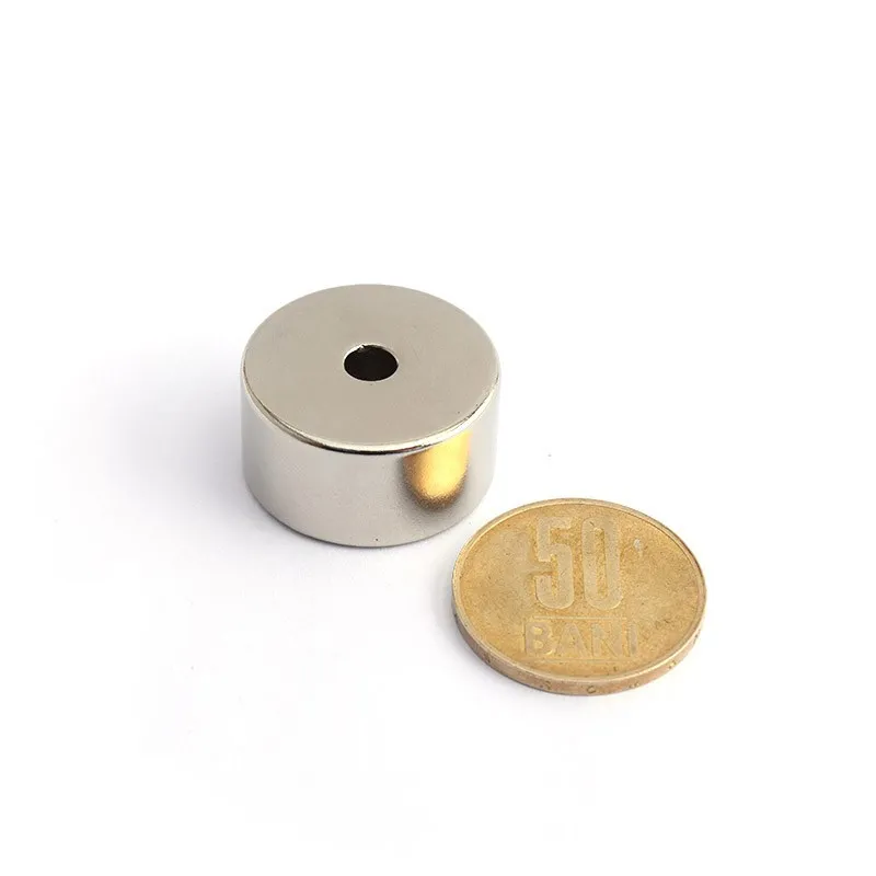 Неодимови магнити, подобни на цилиндрични, но със специално направен отвор за закачане на въже или закрепване с щифт или винт.