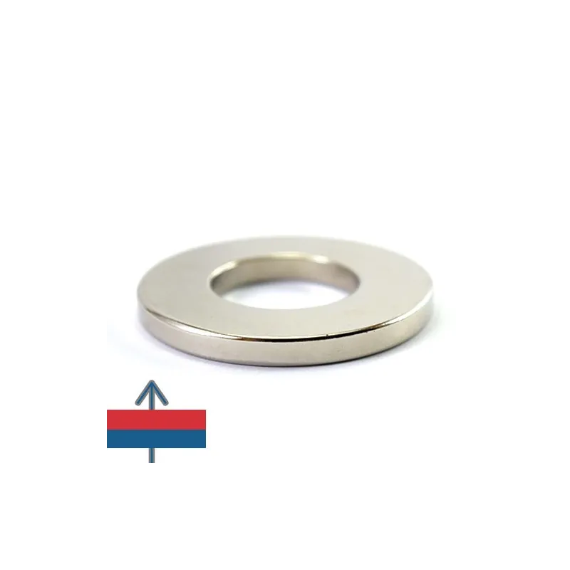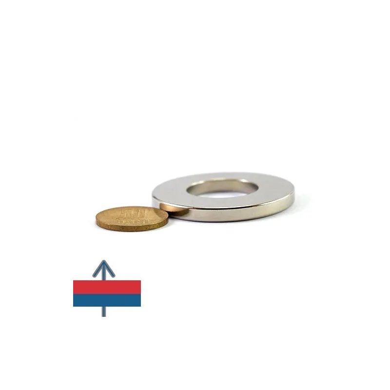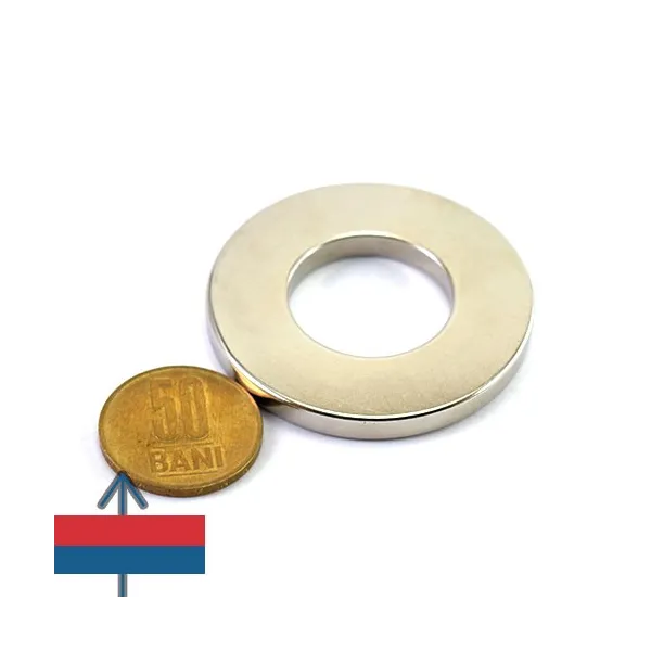 Неодимов магнит тип пръстен с адхезивна сила до 12,5 кг при идеални условия, покрит с защитен никелов слой. Този тип магнит често се използва като универсална магнитна скоба, много полезна за магнитно закрепване в строителството, мебелната индустрия или при изграждането на рекламни конструкции. Въпреки това, спектърът от приложения за този магнит е много по-широк: