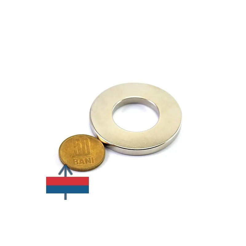 Силен неодимов магнит, пръстеновидна форма, никелирано покритие, N35, приблизителна сила 12,5 кг