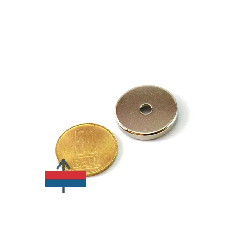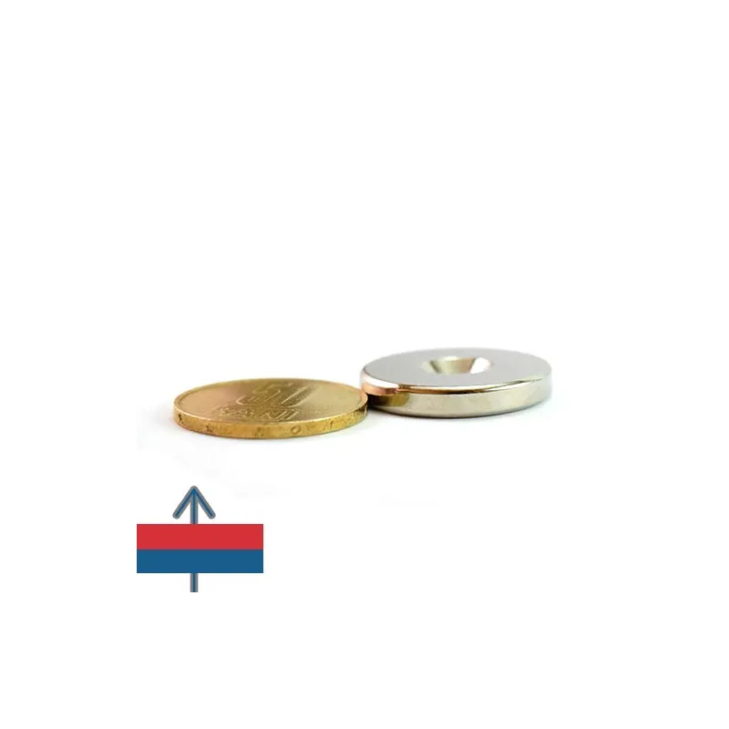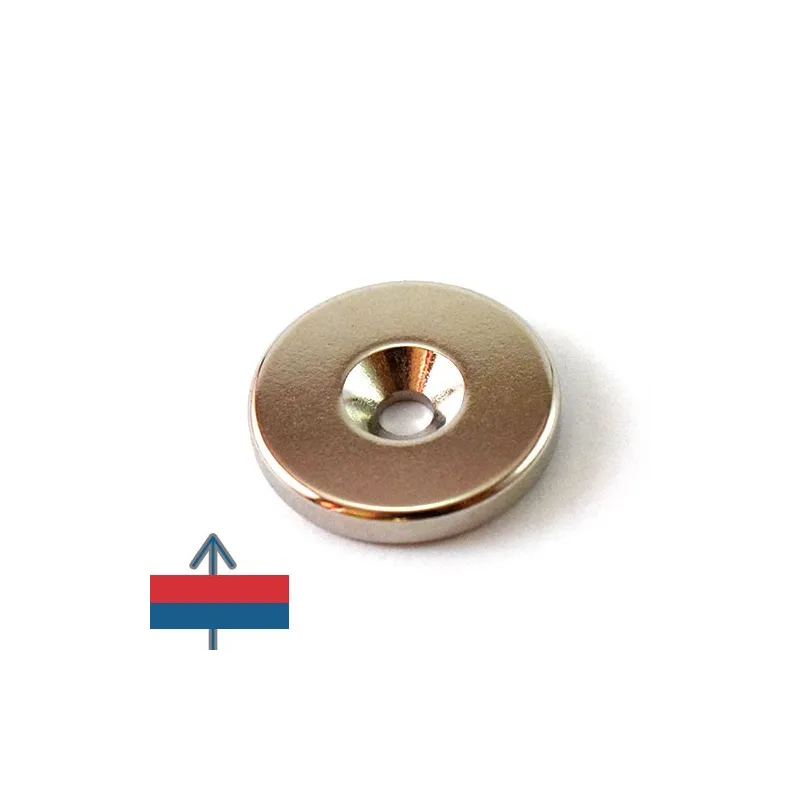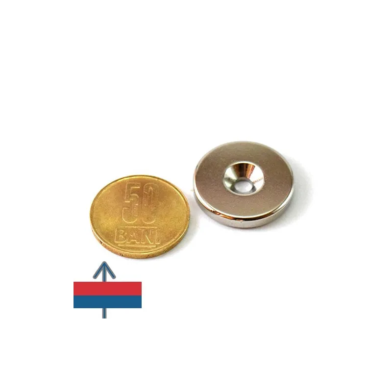 Този неодимов магнит, неправилно наричан „тенджера“, всъщност е груб пръстеновиден магнит с външен диаметър 25 мм и вътрешен диаметър 4,5 мм, с вдлъбнат отвор на една от страните. Този модел е специално проектиран за закрепване с винтове с потънал глава и е идеален за мебелната индустрия. Модерните аксесоари за кухни и бани, като невидими стойки за метални предмети, амортисьори за врати, които използват магнитна привличане или отблъскване, правят мебелите по-привлекателни и по-лесни за поддръжка. Вграждането на магнити в различни материали като камък, дърво, керамика, пластмаса или текстил предлага нови възможности и приложения, които бяха немислими за старите дърводелци. Днешните мебели дизайнери използват тези магнити, за да добавят „уау“ фактор в съвременните домове.