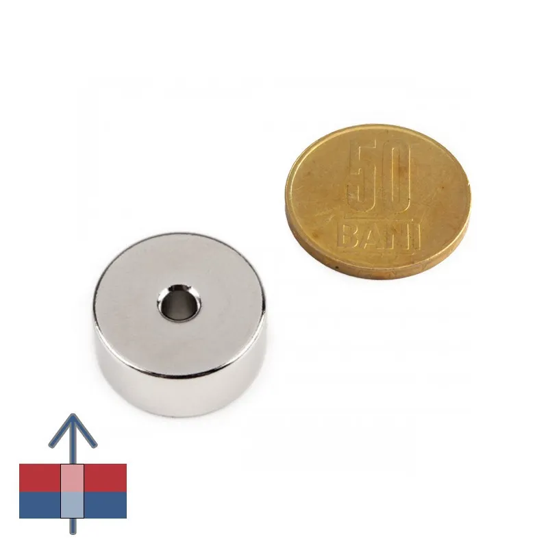 Този неодимов магнит тип пръстен има външен диаметър 21,8 мм, вътрешен диаметър 4,2 мм и височина 10 мм. Магнитът е покрит с тънък (12 µm) слой никел-мед-никел. Силата на привличане от 12,5 кг е изчислена при идеални условия, но имайте предвид, че тя може да варира значително в зависимост от условията на работа на вашата магнитна система.