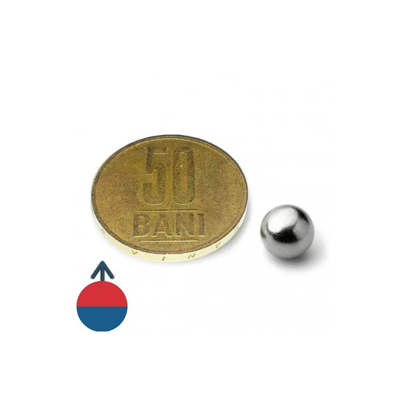 Силен неодимов магнит, сферична форма, никелирано покритие, N38, приблизителна сила 900 г