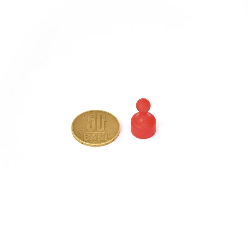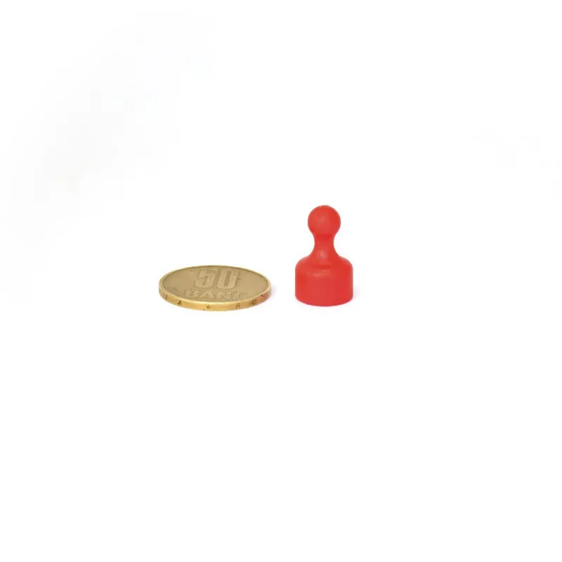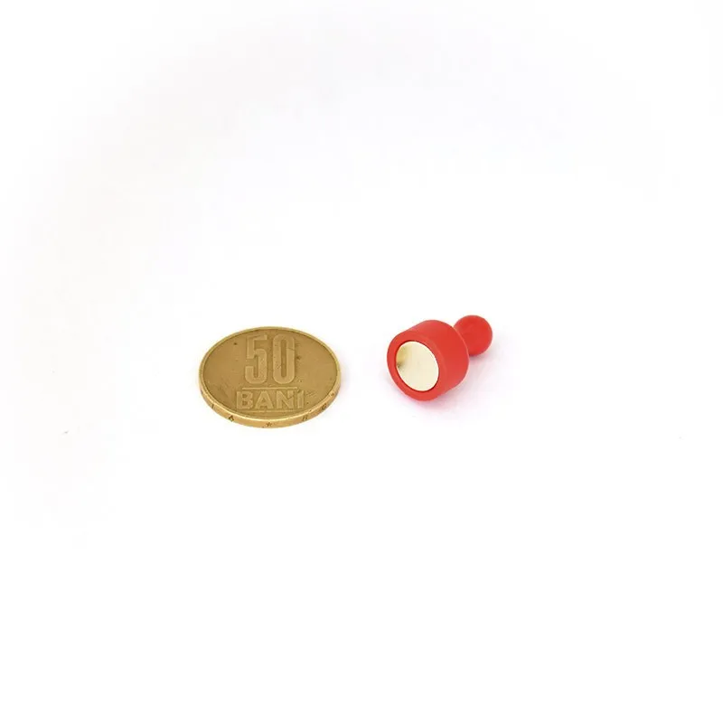 Неодимов магнитен пинов диаметър 12 x 20 мм, червен, върху монета 50 стотинки