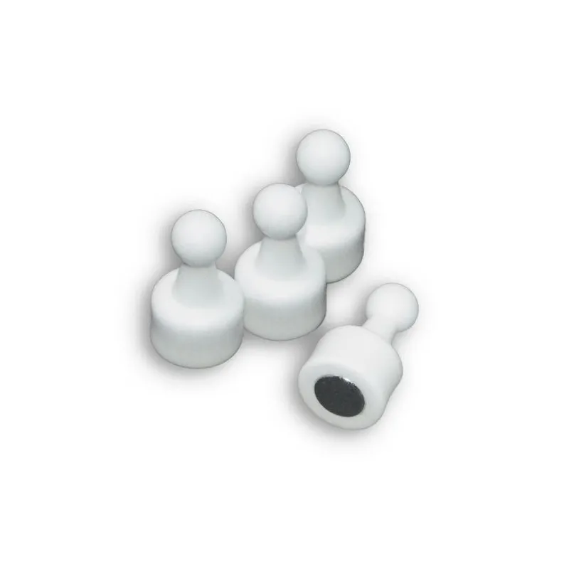 Магнитни щифтове, изработени от неодимови магнити, които лесно могат да задържат до десет листа хартия А4 на бели магнитни дъски, хладилници и други метални повърхности. Тези малки магнити с форма на щифт могат да се прикрепят и към боядисани феромагнитни повърхности. Дръжката на щифта ви позволява лесно да отделяте магнитите и да ги поставяте на друго място. Магнитите за магнитна дъска са полезни за закрепване на чертежи към дъската или за поддържане на декоративни елементи.