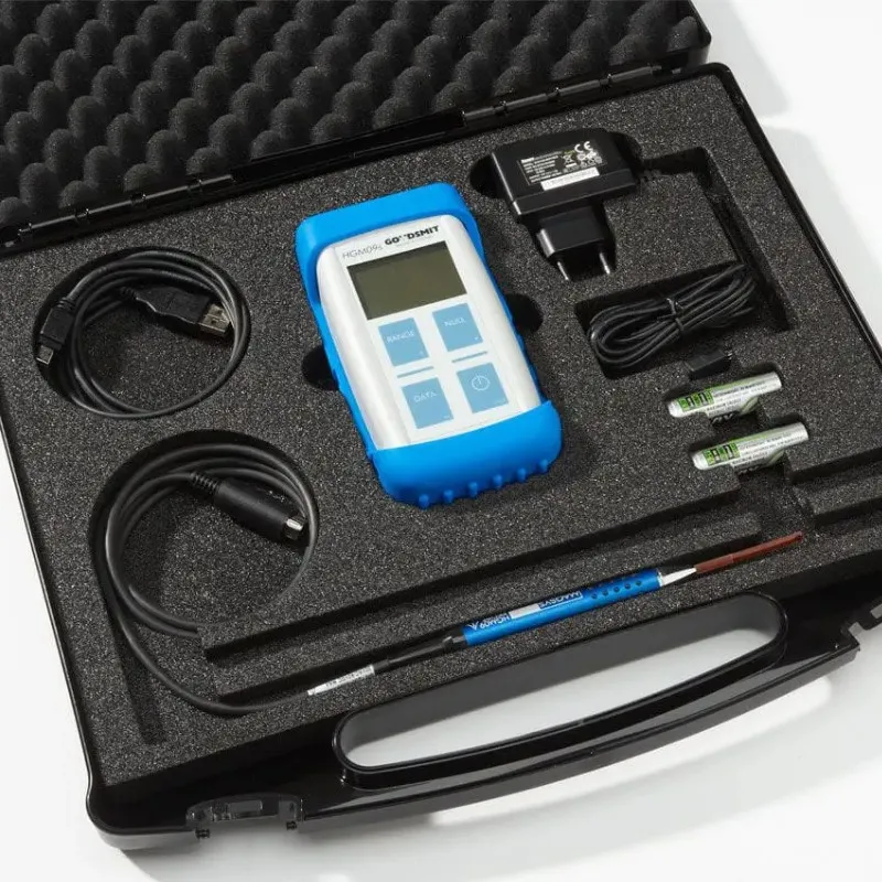 Комплектът включва: HGM09s, напречна Hall сонда, презареждаеми батерии, USB кабел (за зареждане и пренос на данни), захранващ кабел и твърд куфар за транспорт и защита. Този пакет покрива обичайните сценарии на измерване и позволява незабавна употреба на терен или на работна маса.